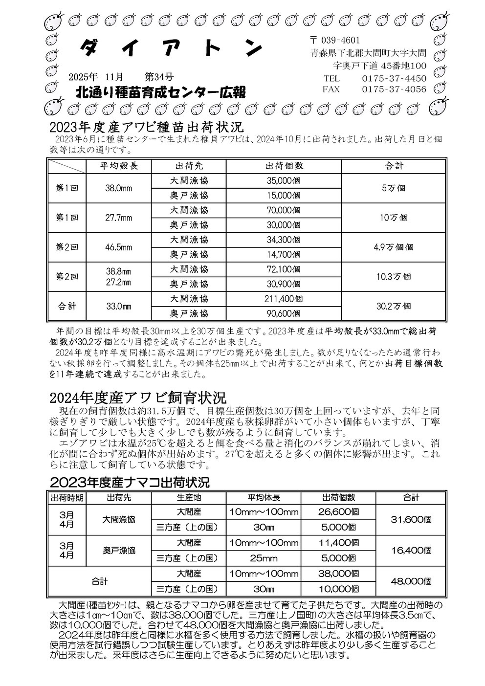 2025年11月発行の、北通り種苗育成センター広報誌「ダイアトン」の記載内容に誤りがありましたので、お詫びして訂正いたします。正しい掲載内容は下記のリンクのPDFファイルのとおりです。